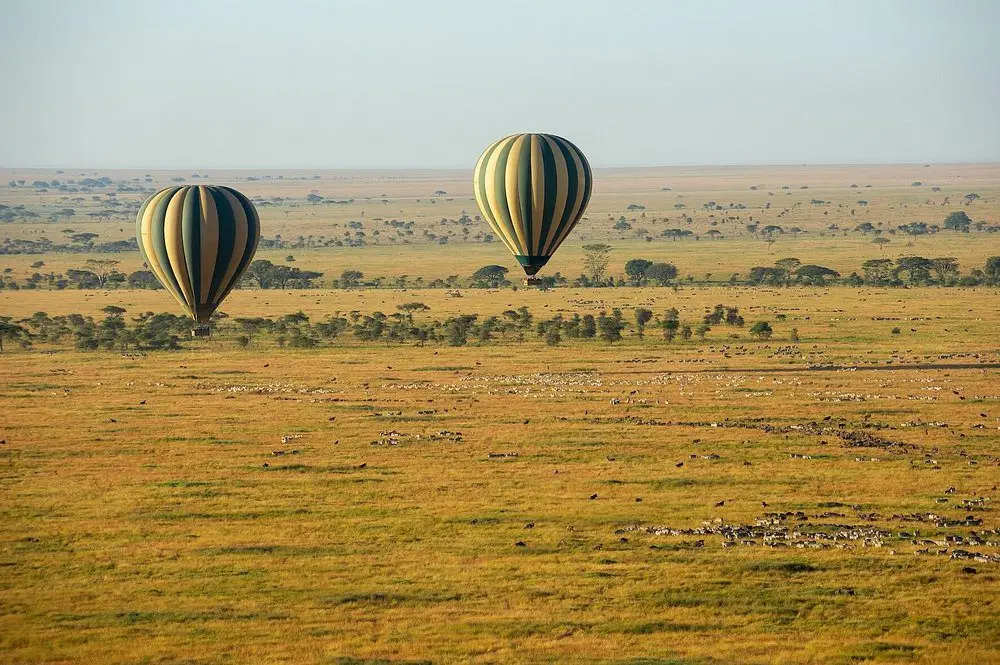 An optional activity where guests can float over the Serengeti at sunrise, offering a spectacular aerial view of the landscape and wildlife.
