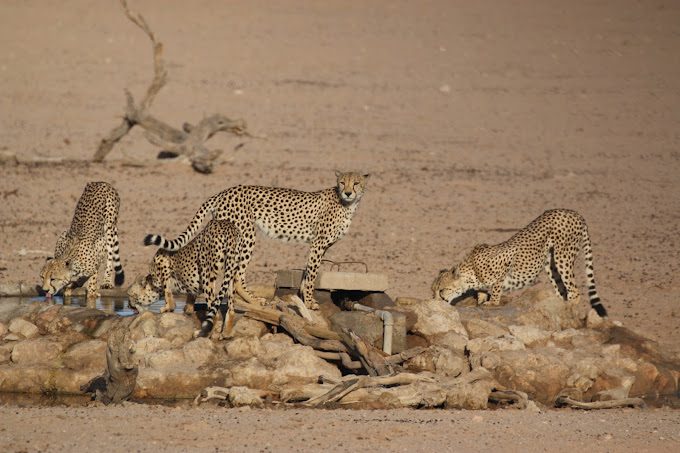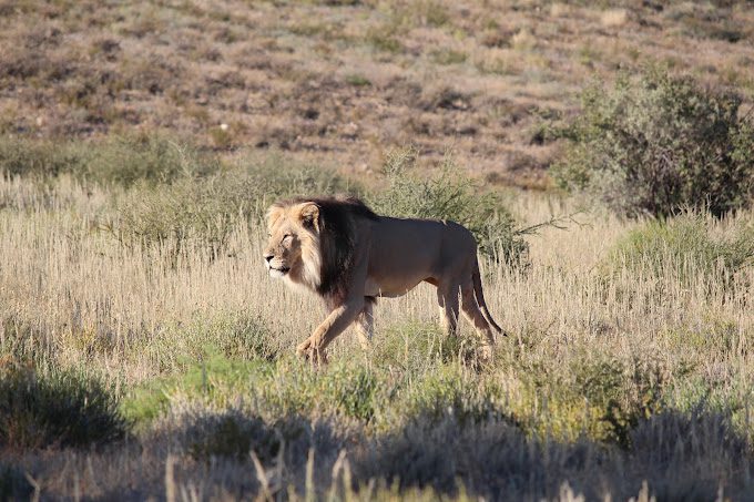 The park is famous for its predators, particularly black-maned Kalahari lions, cheetahs, and leopards. Other wildlife includes spotted and brown hyenas, giraffes, gemsbok (oryx), springbok, and wildebeest. Birdlife is diverse, with over 200 recorded species, including birds of prey like martial eagles and tawny eagles.