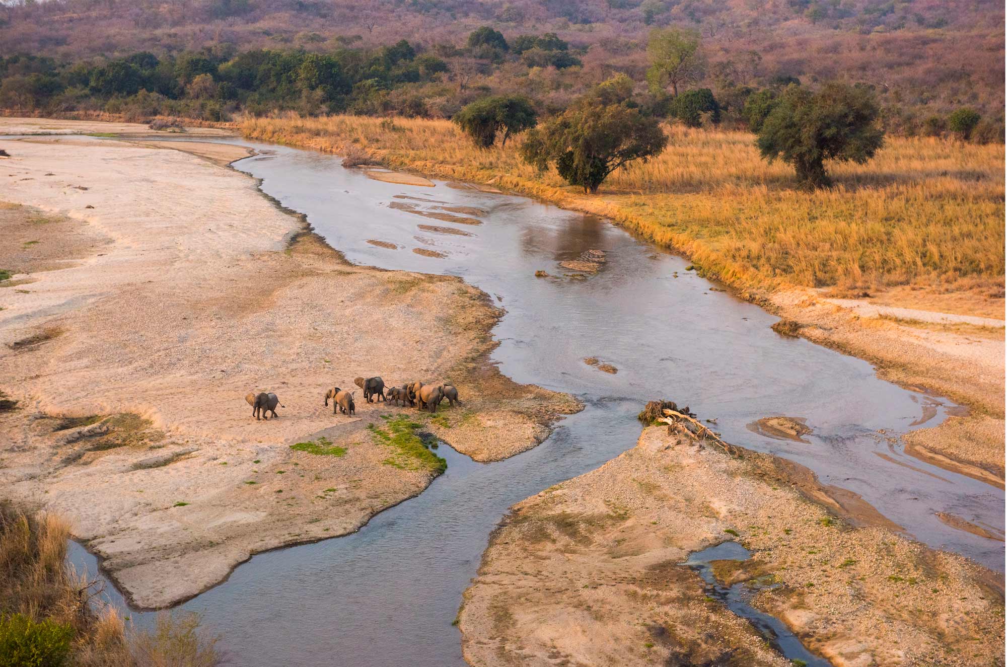 Several tributary rivers are running through the Park and into the Luangwa which play an important ecological role in the area. The crystal-clear Mwaleshi River trickles down the escarpment in a series of small waterfalls. It recedes in the dry season, leaving many pools along the way, drawing the animals from the bush to its banks in search of water. No game drives are permitted in the Mwaleshi area, and access is by organized walking safaris only.