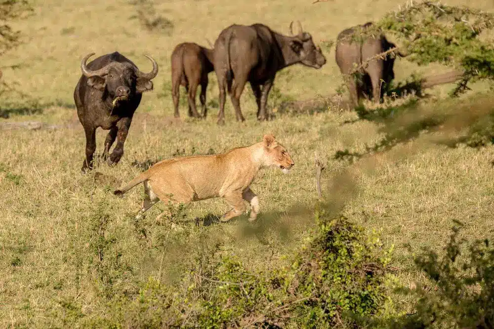 The abundance of water sources in the form of springs, streams, and rivers, attract an array of bird species, as well as safari wildlife amongst the beautiful landscapes. Cheetahs are frequently spotted, with resident lion pride of over 20 animals dominating the area. There are also large numbers of giraffe, as well as cape buffalo and elephants which can be seen during game view drives.